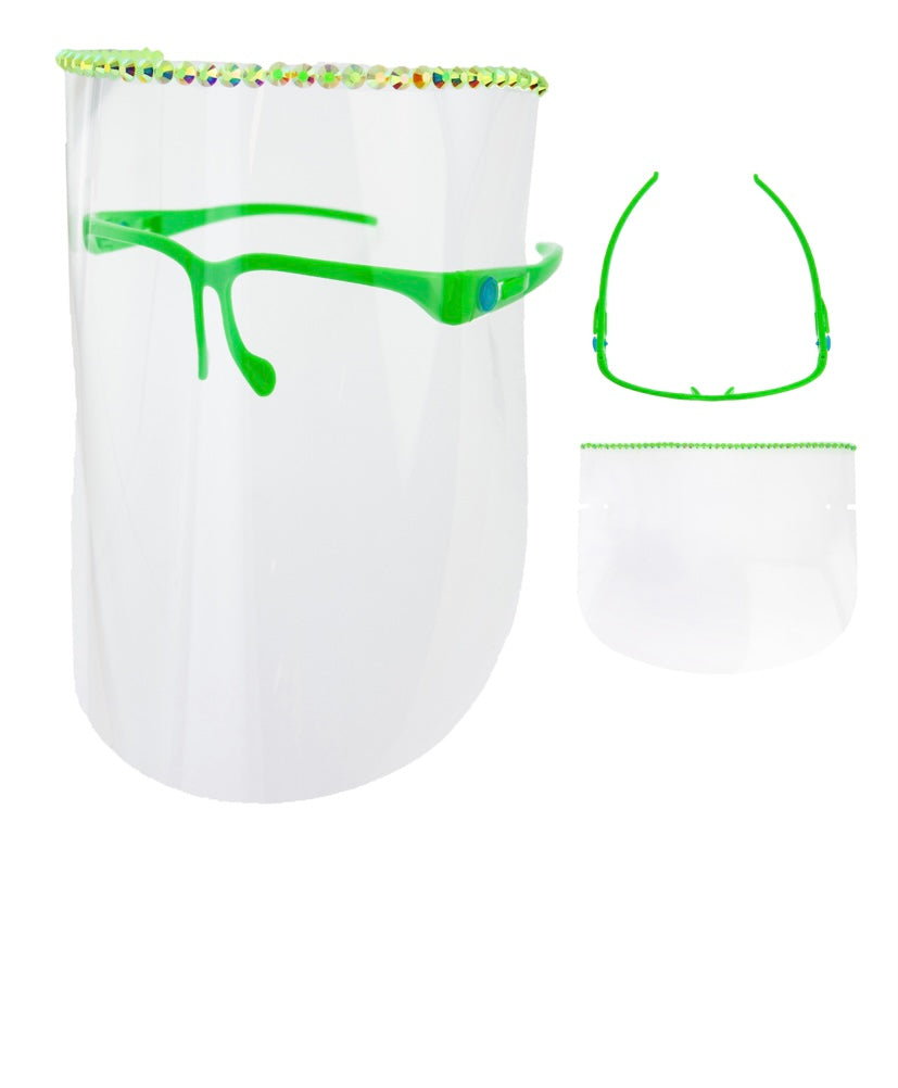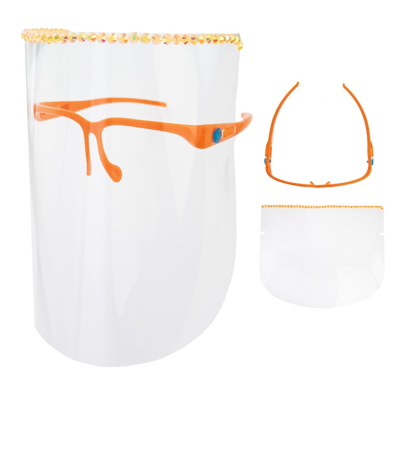 RHINESTONE TRIMMED FACE SHEILD AND DETACHABLE GLASSES