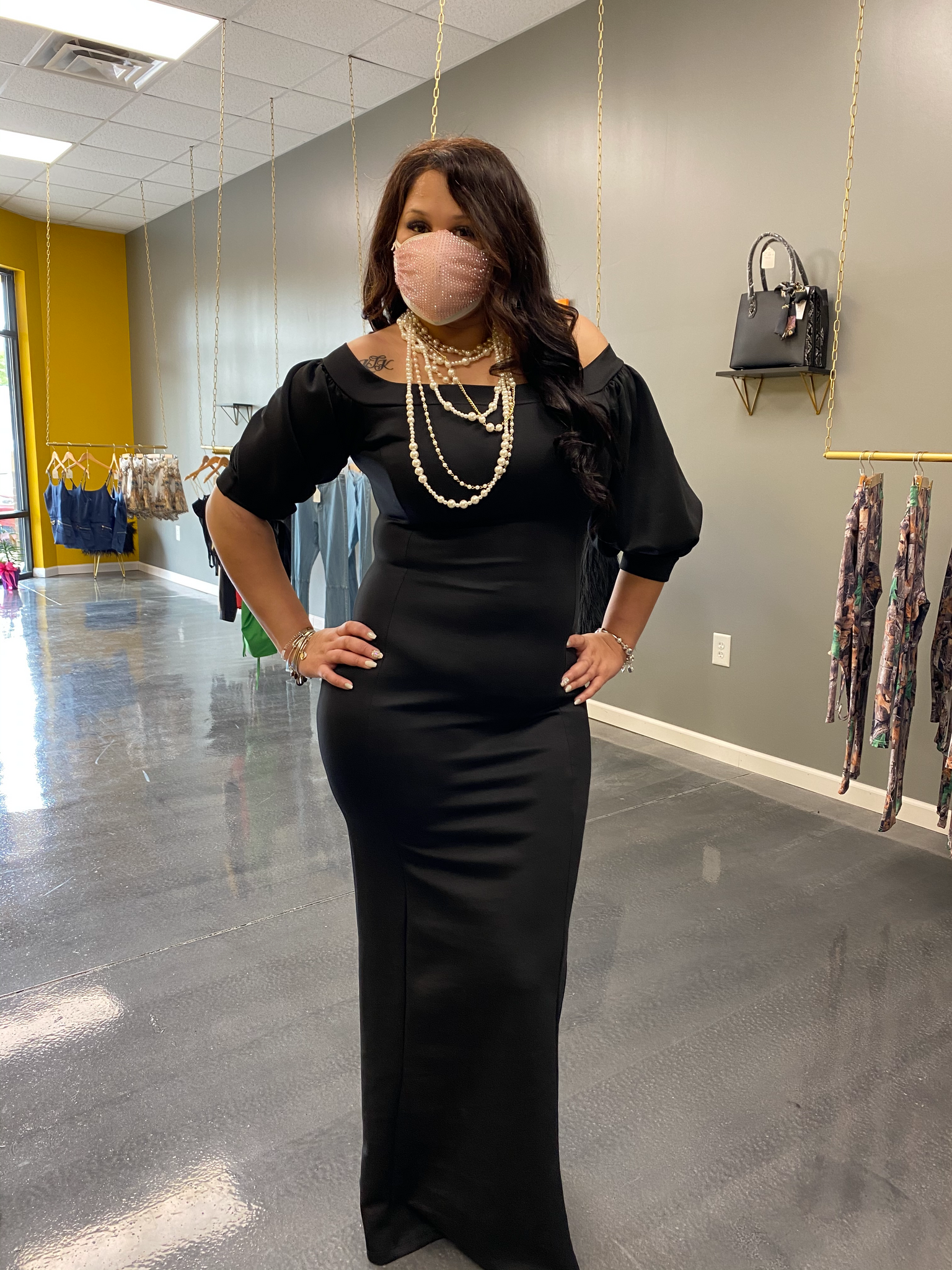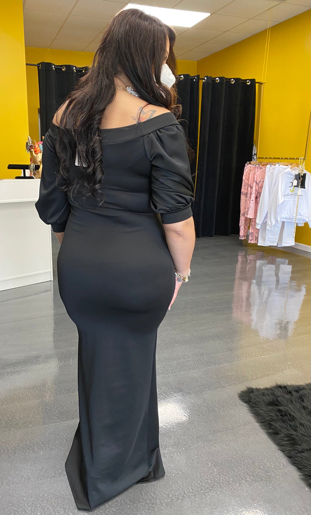 Blk, Off the shoulder bell 1/2 sleeve plus maxi dress