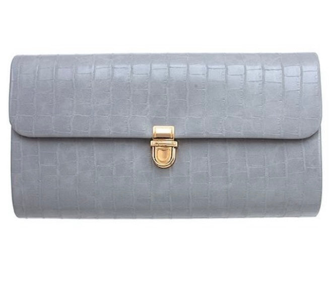 Gray Croc pattern faux leather clutch bag. L: 10 W: 5 1/4