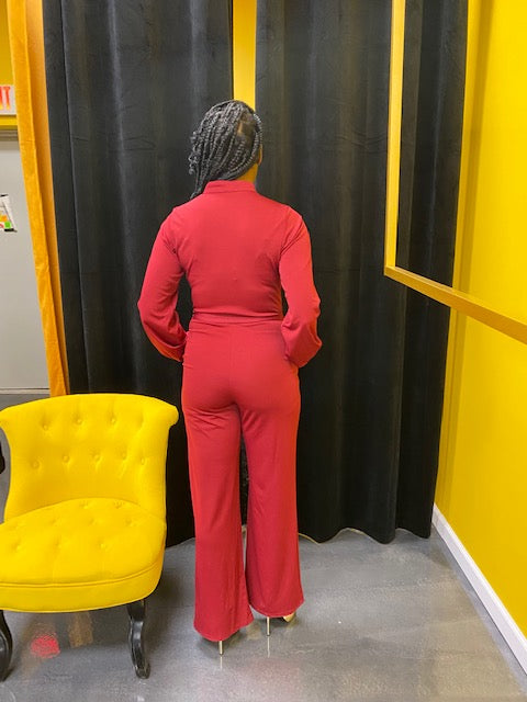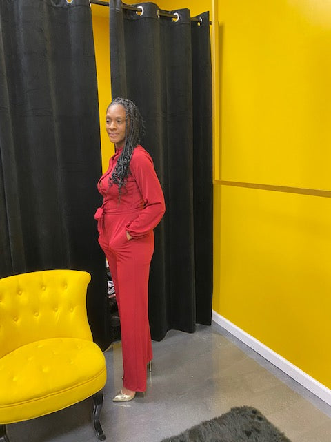 LONG SLEEVE ONEPIECE JUMPSUIT WITH TIE