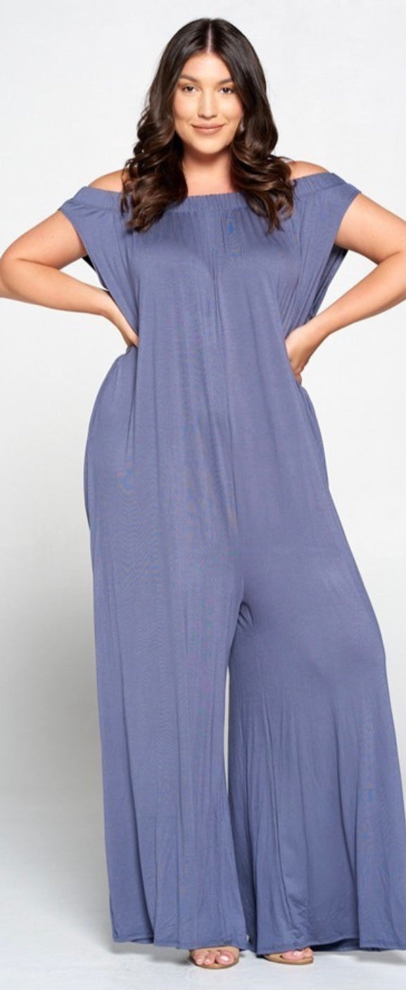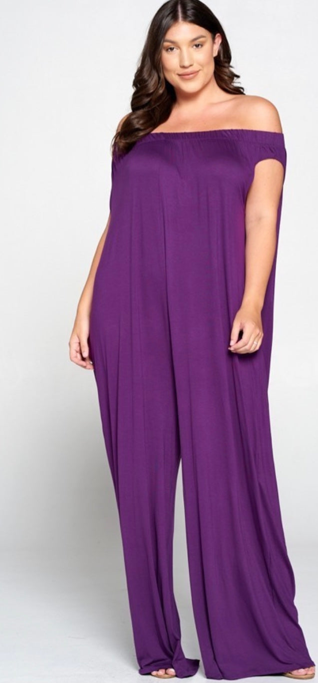 EGGPLANT OR MINERAL COLOR, CURVE, OFF OR ON THE SHOULDER JUMPSUIT