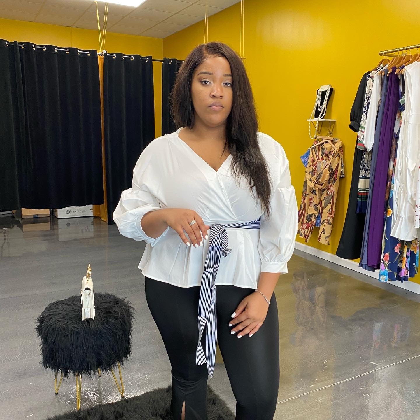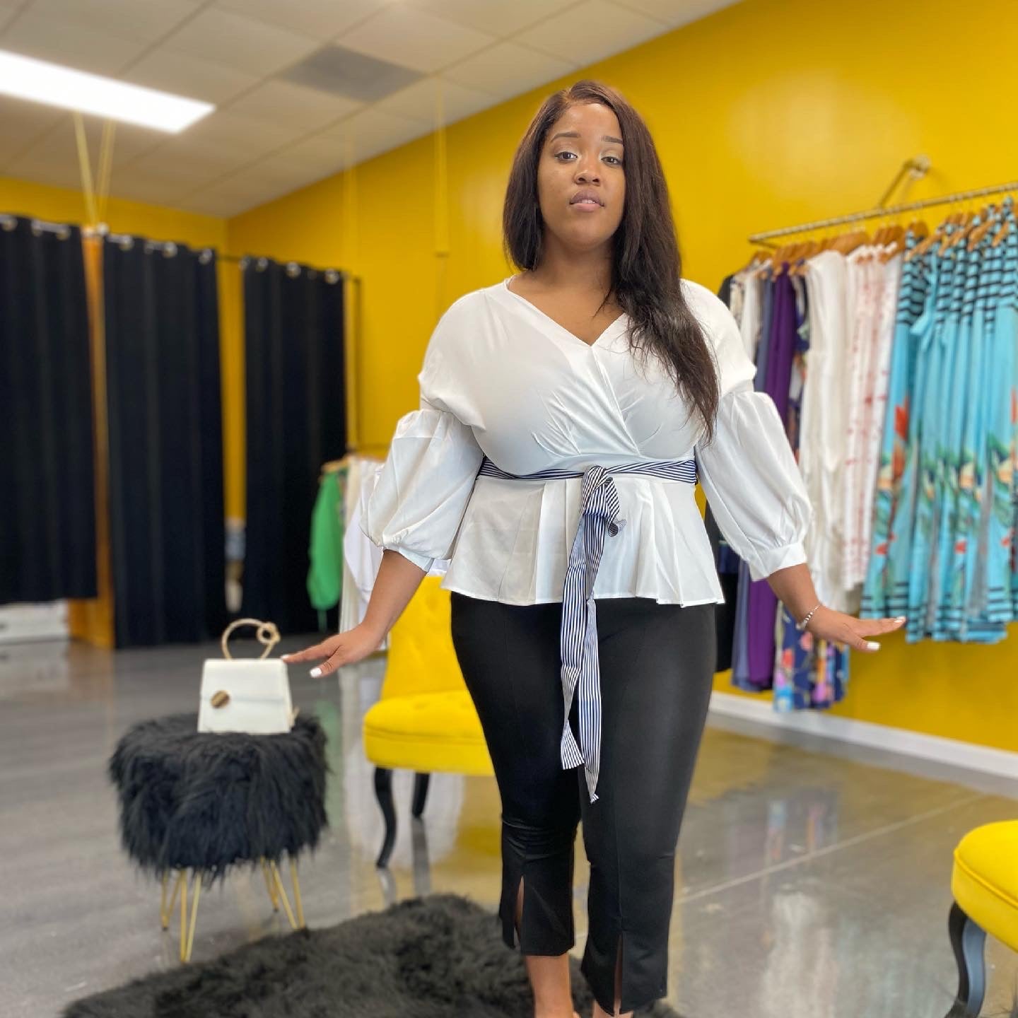 Casual set that consists of a formal top paired with a slitted pants made from high quality spandex and cotton. Available also with pen striped top like belt