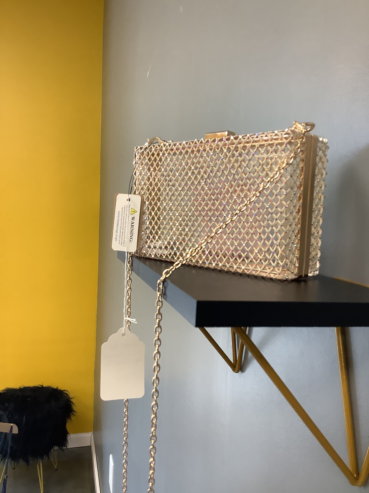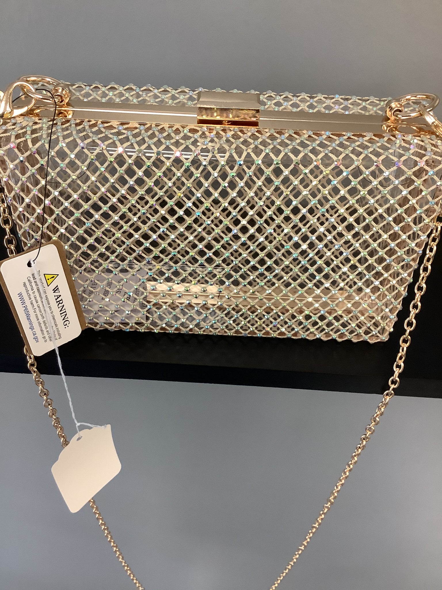 Stretch rhinestone mesh clear bag, rhinestone and metal