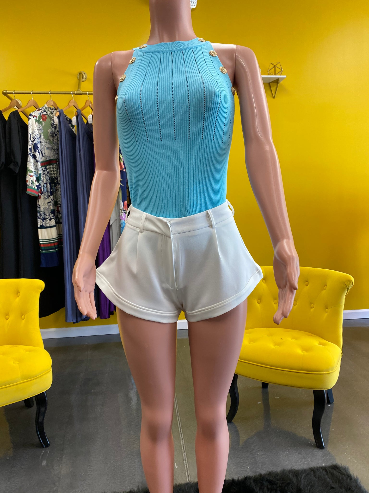 White Casual loose fit women wide leg shorts, high waist sexy button shorts, short pants. 100% Polyester M is comparable to S/M and L is comparable to M/L